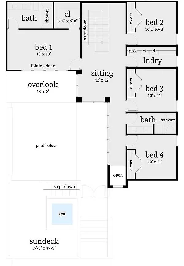 Welcome to our house plans featuring a 2-story 4-bedroom modern beach home floor plan. Below are floor plans, additional sample photos, and plan details and dimensions.