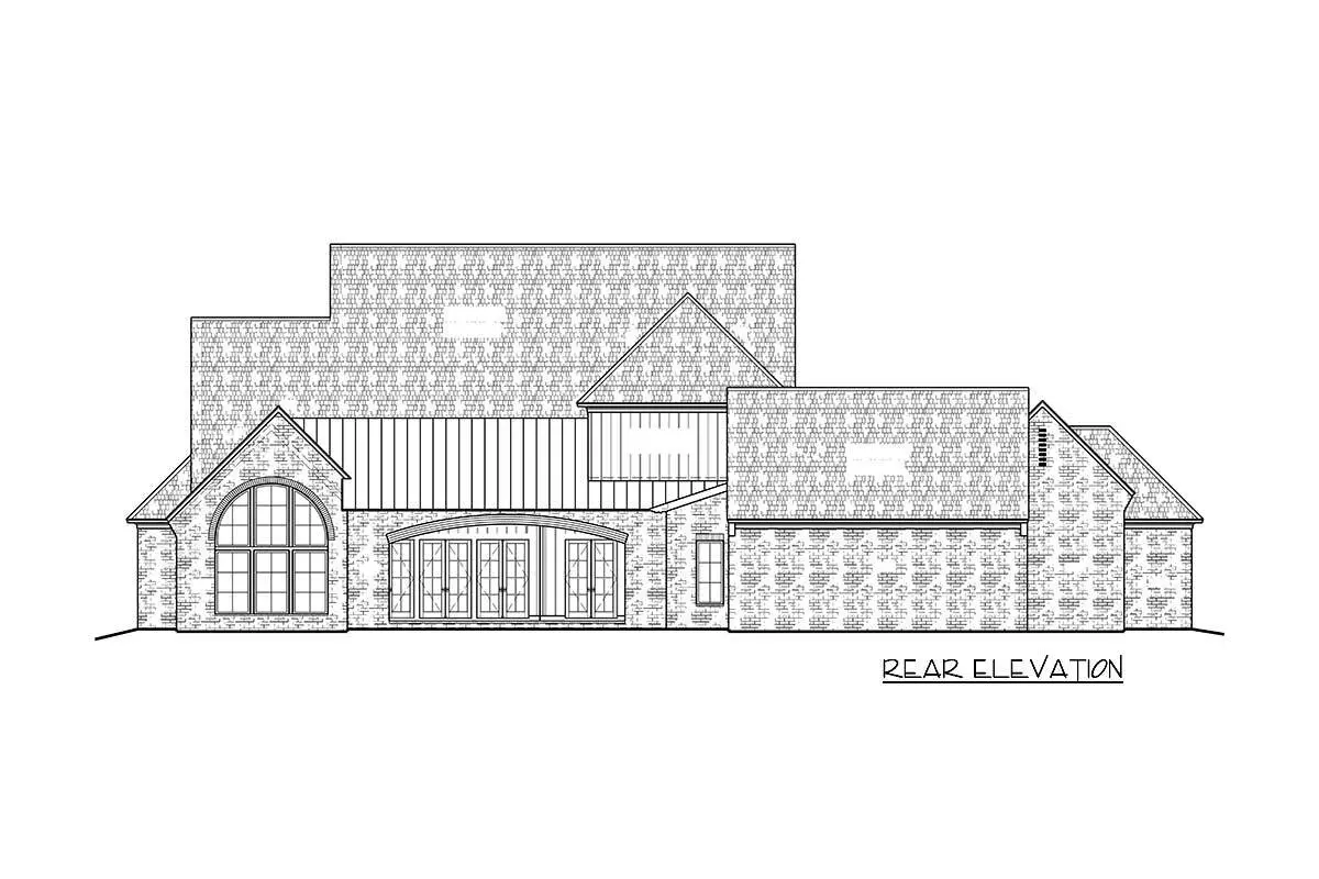 Sketch of the two-story, four-bedroom contemporary farmhouse’s rear elevation.