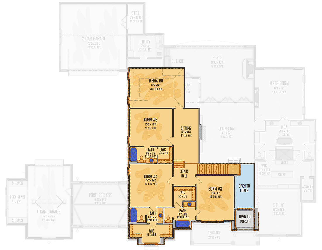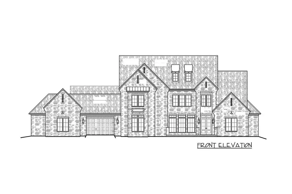 This premium, 2-story brick transitional home design features a Porte cochere that leads onto a parking courtyard framed by three garage spaces, each with dedicated storage space. The front door welcomes you inside, where the foyer is flanked by a formal dining room and a quiet study. Straight ahead, a large living area with three sets of french doors leading to the back patio.