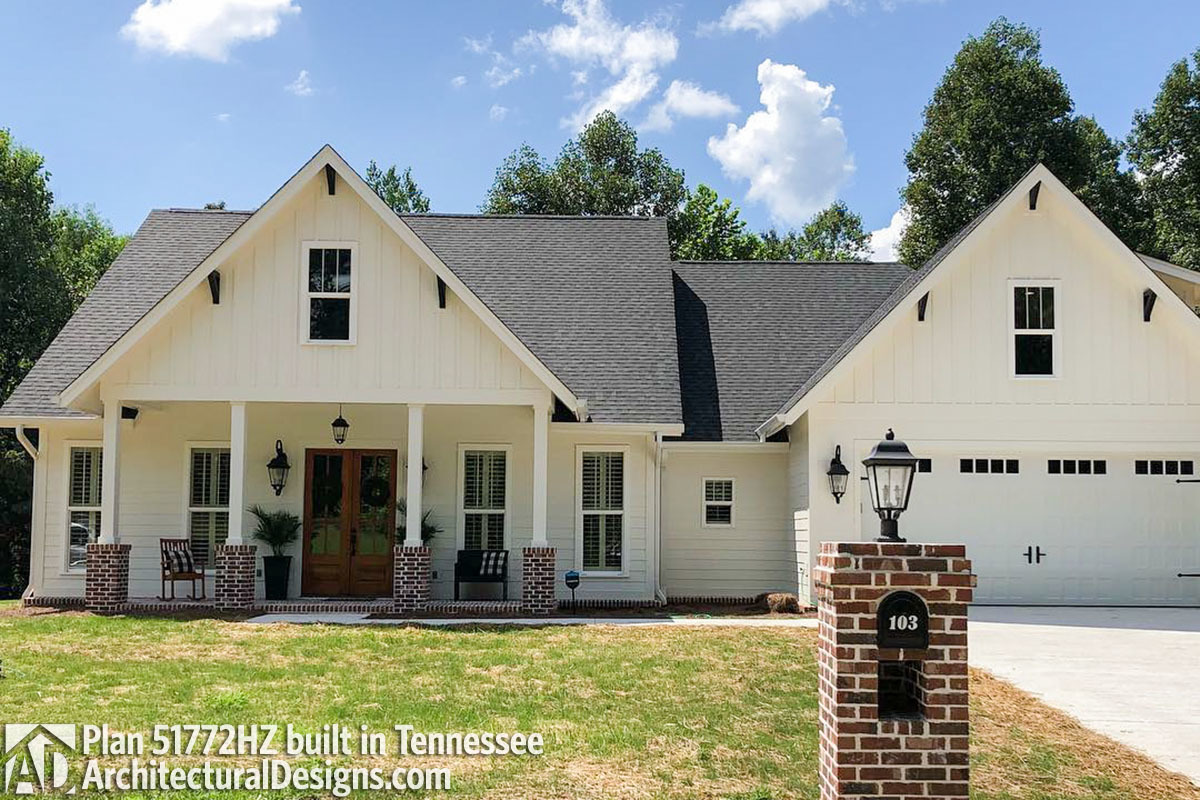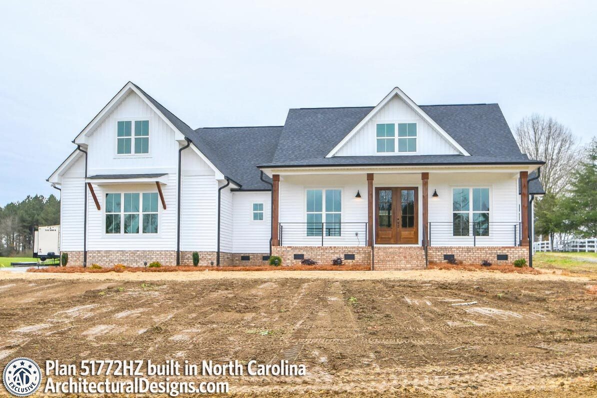 Farmhouse and 3-car garage on the other side instead of a vaulted room with the main entry porch.