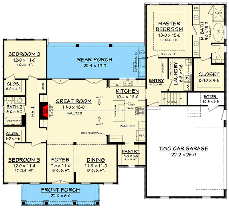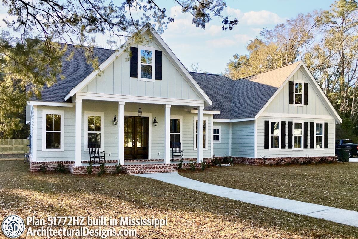 Each bedroom has its own walk-in closet, and the bathrooms are also spacious. A large outdoor kitchen can be installed on the back porch for additional space. There is plenty of room for vehicles and other necessities in the spacious garage. These features are all crammed into a layout that is less than 2000 square feet, making it a bargain to construct.